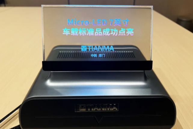 近日,天馬新型顯示技術研究院(廈門)有限公司,繼全球領先的G3.5 Micro-LED產(chǎn)線全制程貫通后,首款車載標準化產(chǎn)品——Micro-LED 7英寸車載標準品成功點亮!這款產(chǎn)品集高透明度、可拼接、高