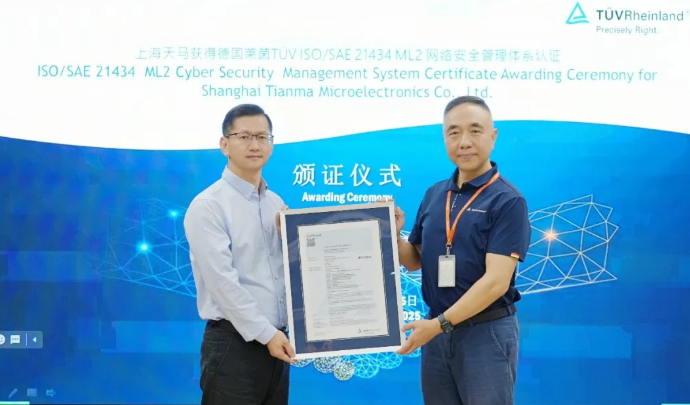 國際權威認證!天馬獲頒ISO/SAE 21434汽車網(wǎng)絡安全管理體系認證